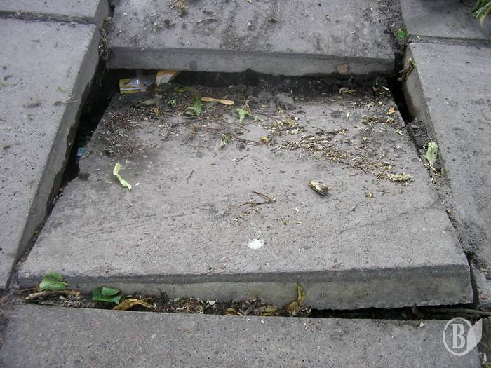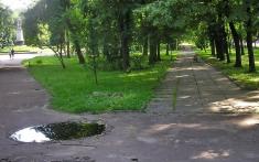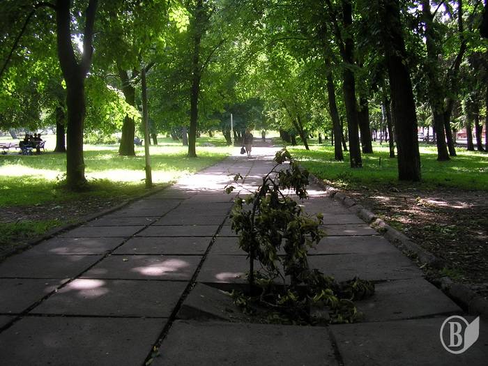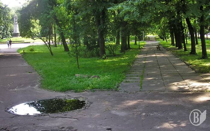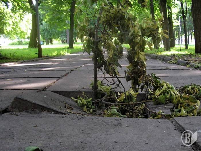 В черниговском парке на пешеходной дорожке появилась пропасть. Конечно, черниговские коммунальщики так или иначе до неё доберутся.