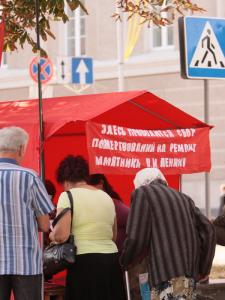 Упродовж останніх двох тижнів (щоправда, не кожного дня) у центрі міста чернігівці зустрічають червоний намет Компартії України.