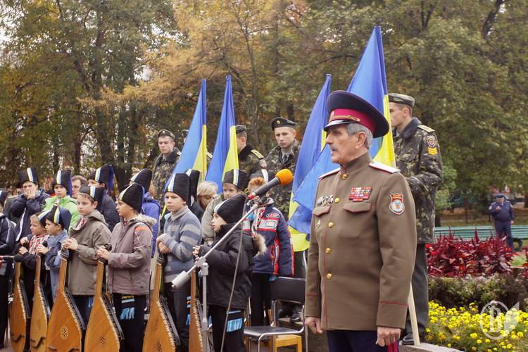 Торжественные мероприятия по случаю Дня украинского казачества начались около памятника Богдану Хмельницкому.