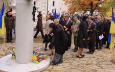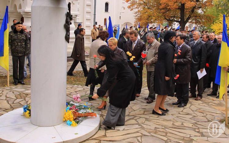 После председателей стали нести цветы и их подчиненные, в частности Оксана Туник-Фриз, которая положила около памятника Мазепе шесть гвоздичек и искренне перекрестилась.