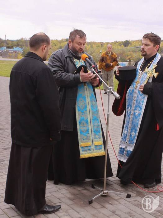 Первыми возложили венки Николай Хоменко и Александр Соколов, причем губернатор перекрестился на памятник, а мэр лишь поклонился ему. Как только венки было возложены, сильный порыв ветра сорвал их с места и отнес от памятника. Это дало повод говорить, что гетман подарков не принял.