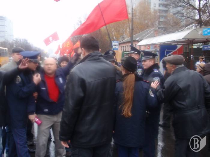 Під гасло «Комуняку на гілляку!» червоні з охороною міліції були змушені зупинитись.