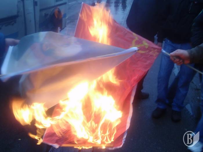 7 листопада, з метою очищення країни від «червоної чуми», чернігівські «свободівці» на очах колони комуністів спалили портрет Лєніна-Бланка та червоні прапори.