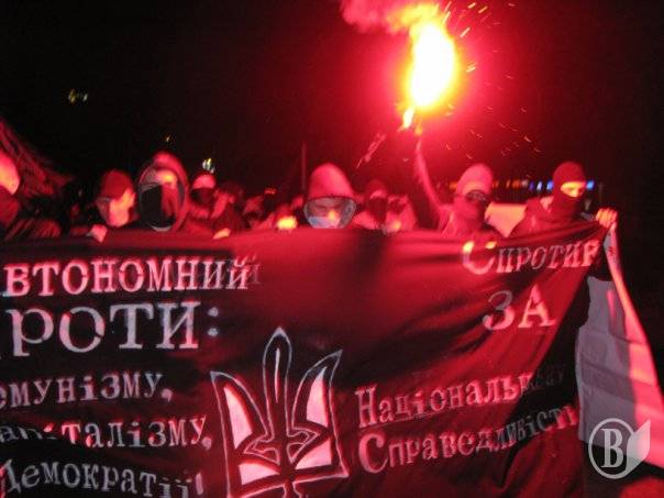 Справка. Автономные правые, автономы — это движение украинских новых правых, основанное на идее построения сети независимых одна от другой автономных групп. Такую тактику организаторы движения объясняют тем, что «автономная тактика позволяет сосредоточиться на главном задании движения — агитации и пропаганде».