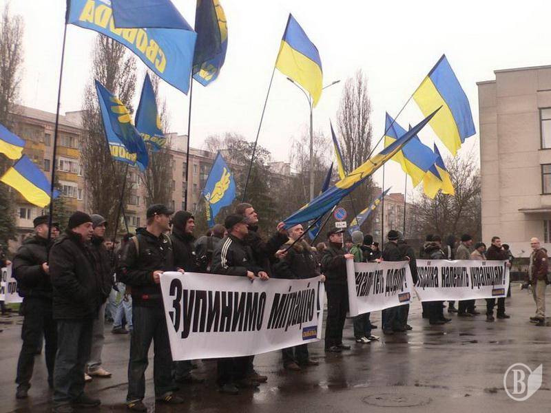 – З 1 січня, згідно угоди про реадмісію, – заявив голова чернігівської обласної організації ВО «Свобода» Андрій Міщенко, – до України з країн ЄС, направлять 250 тисяч нелегалів. Це при тому, що народжуваність в Україні складає 300 тисяч чоловік щороку. Тобто на одного українця буде з’являтися один «кольоровий».