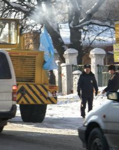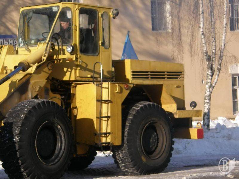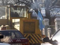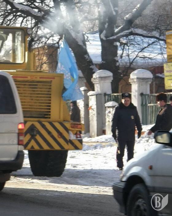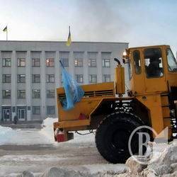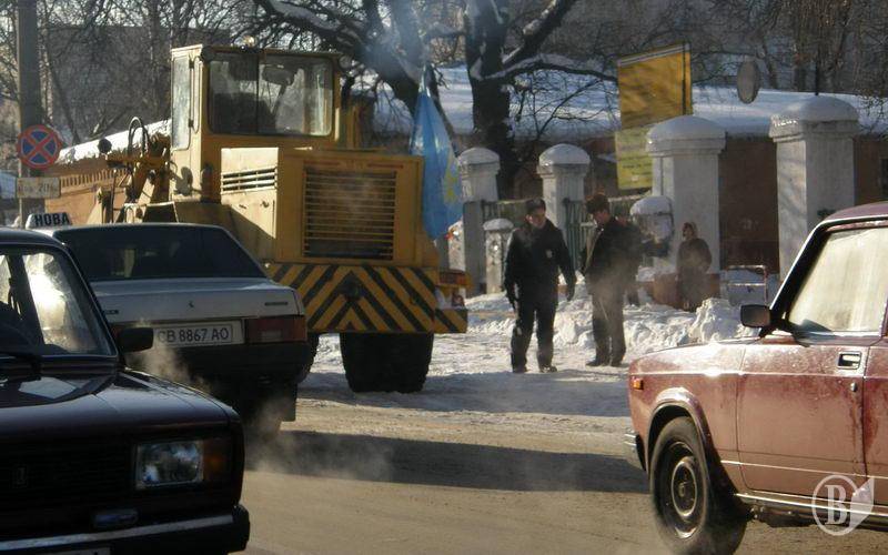 По Чернигову «рассекает» трактор с флагом Партии регионов Украины. Этот трактор и раньше убирал снег в Чернигове, но теперь – под флагом.