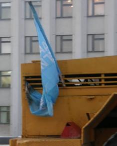 Впрочем, появлению флага на тракторе есть определенные аналогии. Весной в 2009 году работники ЖКХ выходили на общегородской субботник под флагами «Единого центра». Вадим Антошин по совместительству (Вы только подумайте, какой невероятно работящий человек!) – председатель Деснянской районной организации Единого Центра. По крайней мере, был таким на то время.