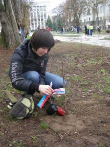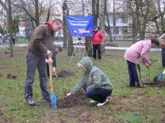 Активісти партії садили дерева за планом «Зеленбуду» у парку на проспекті Миру від Мегацентру до перехрестя з проспектом Перемоги.