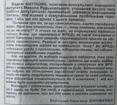 9.04.2010 Пан Антошин в газеті управління ЖКГ розвів демагогію. ФОТО