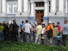 Аби влаштувати своє шоу, вони зібралися під сірими стінами міської ради. У програмі дійства – транспаранти, посиденьки, порожні склянки і торохкання по столам таранкою.