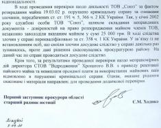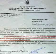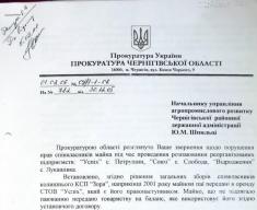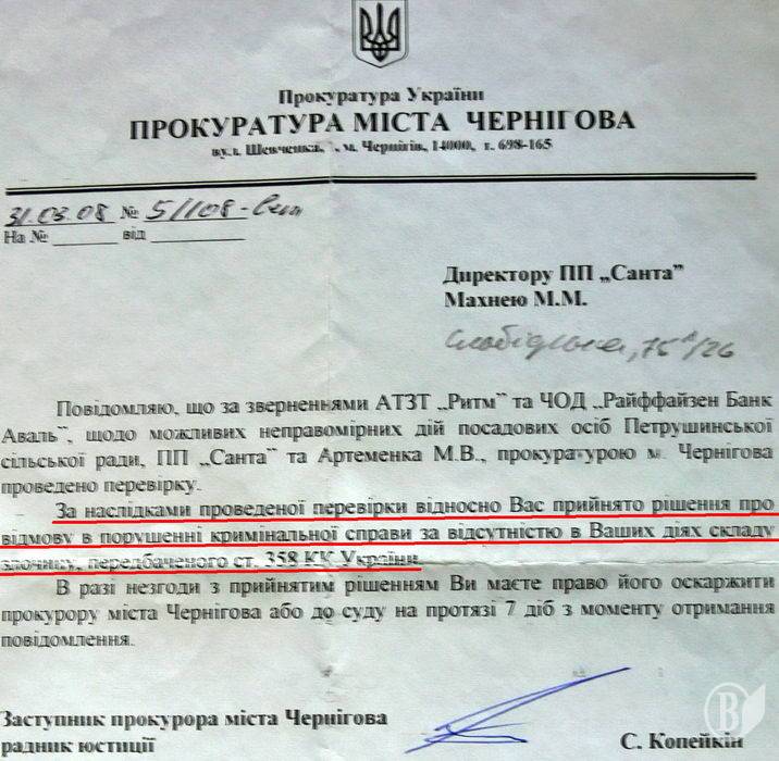 Уважаемый автор, были проведены проверки: а) прокуратура в Черниговской области; б) прокуратура г.Чернигова; в) отдел милиции в Черниговском районе; г) контрольно-ревизионное управление; д) сельхозуправление у Черниговской области;
