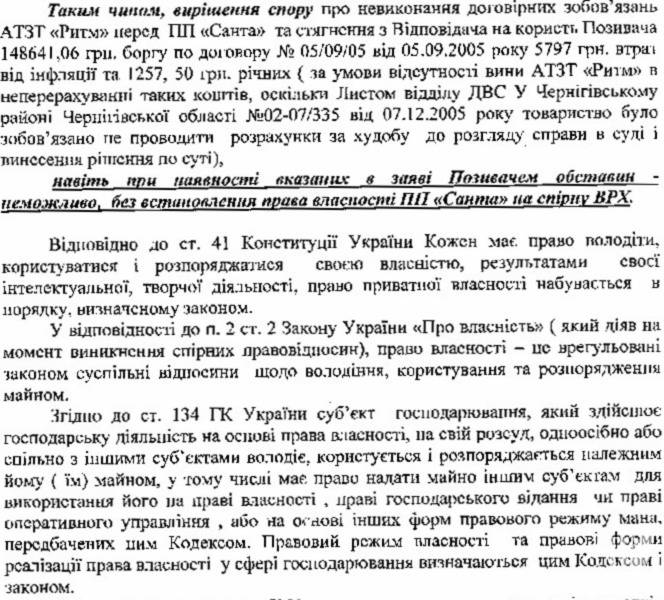 5. «Важно то, что по устной договоренности с крестьянами ПП «Санта» должен был вернуть им деньги за переданную ему БРС лишь после расчетов «Ритма». И это вместо того, чтобы взять товар и сразу рассчитаться за него с крестьянами. Хотя в принципе такие «отсрочки платежа» и разрешены законодательством, но вопрос права «Санты» торговать петрушинским скотом остается сомнительным". Уважаемый автор даже выражает сомнение в законодательстве Украины. Он пишет, что законодательство позволяет, но здесь же выражает сомнение. То есть сомнение автора выше закона Украины. Бывает.