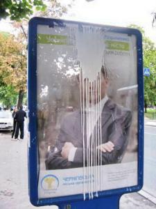 У Чернігові потерпіло від нападників обличчя одного з кандидатів у мери, який рясно заполонив вулиці міста своїми зображеннями.