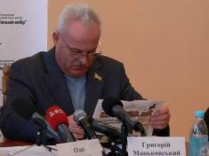 Наприкінці прес-конференції керівник обласного осередку Партії регіонів Григорій Маньковський звучив заяву обласної організації Партії регіонів.