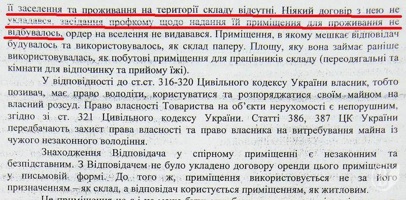 Что интересно, господин Ивашко в исковом заявлении утверждает, цитата: «на неизвестных основаниях ответчик проживает на складе с осени 1994 года», а также: «документальные основания для ее заселения и обитания на территории склада отсутствуют».