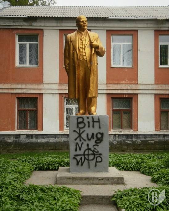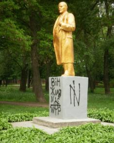 Останній раз цей пам'ятник був обмальований напередодні місцевих виборів. Тоді Леніну, окрім розмалювання, невідомі відбили носа.