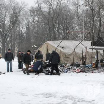 У ніч на Новий рік згорів один з незаконних наметів біля Катеринської церкви у Чернігові. Міліція відкрила кримінальну справу за підозрою у скоєнні хуліганства представниками українських патріотичних організацій.