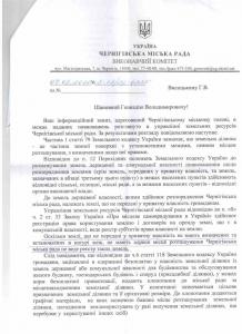 З відповідним запитом про наданні інформації щодо наявності вільних земельних ділянок в м. Чернігові для будівництва та обслуговування житлового будинку звернувся активіст Чернігівської обласної громадської організації «Демократичний Альянс» Геннадій Висоцький.