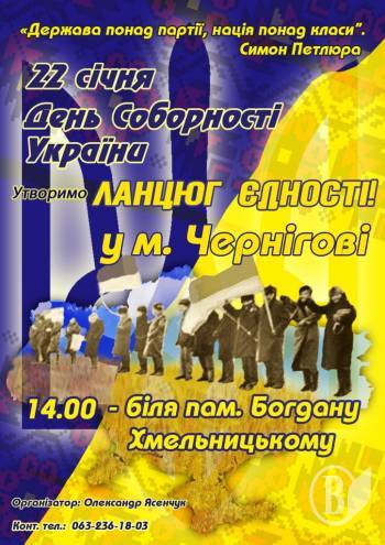 І щоб підтримати ідею свята, ми пропонуємо провести символічний флешмоб до дня Соборності України у Чернігові.