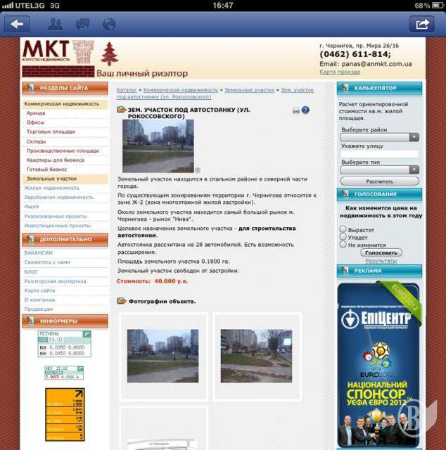Один із чернігівських сайтів оголошень днями розмістив повідомлення про продаж за 40 тисяч доларів земельної ділянки в районі "Хитрого ринку".