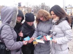 Ознайомили їх з листівками, буклетами та брошурами, які були розроблені спеціалістами відділу зв’язків зі ЗМІ та громадськістю. Після зустрічі провели акцію щодо декларування доходів громадян, отриманих у 2011 році, біля центрального ринку міста, розповсюджуючи серед громадян власну продукцію.