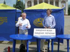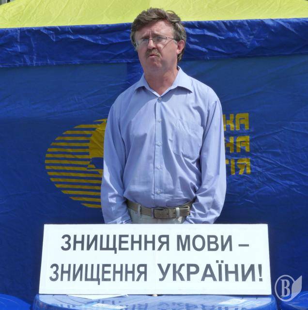 Модератор заходу голова обласної організації УНП Володимир Ступак нагадав журналістам та всім присутнім події, які змусили їх зібратися на прес-конференцію – протест під назвою «Знищення мови – знищення України».