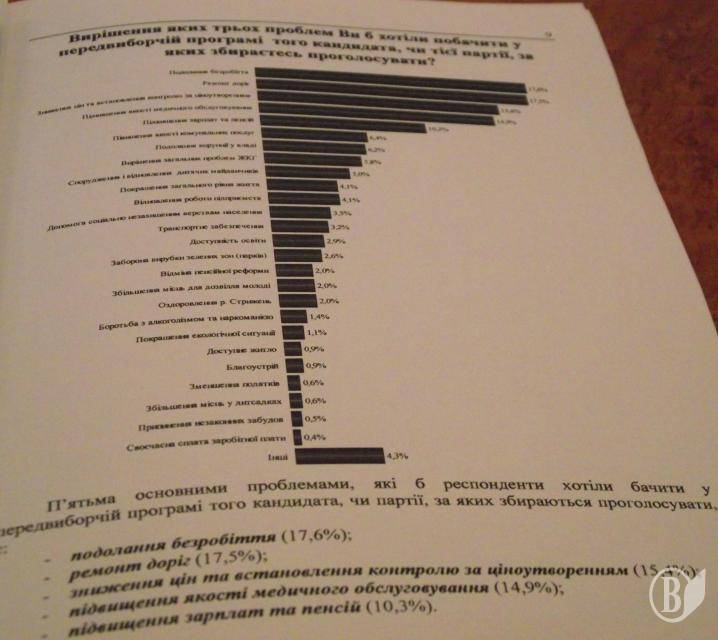 Представники «Поліського фонду міжнародних та регіональних досліджень» представили результати соціологічного дослідження. Що ж на думку виборців є найголовнішою проблемою
