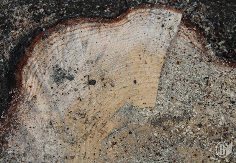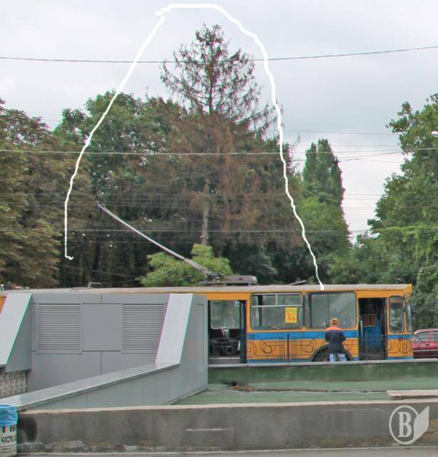 Учора, 14 серпня між 12 і 18 годинами підступно зрізали велетенську ялинку неподалік підземного переходу на перехресті бульвару Миру та вулиць Київської-Щорса. Ялина жива і міцна - видно з пенька. Плодоносила - видно шишки.