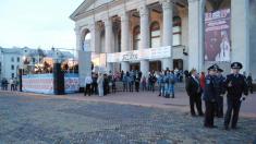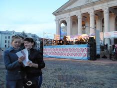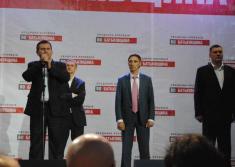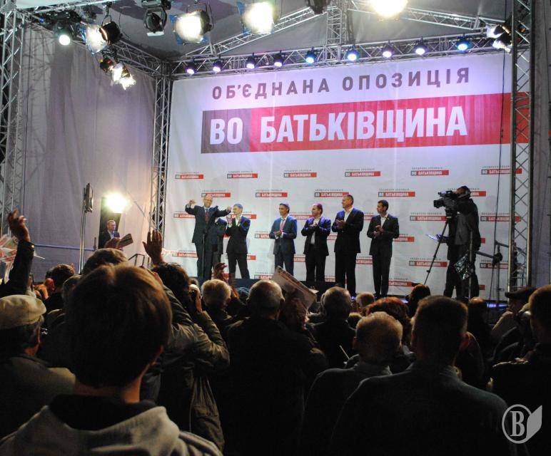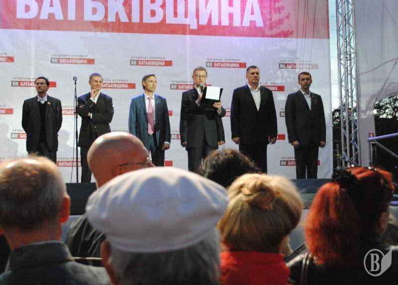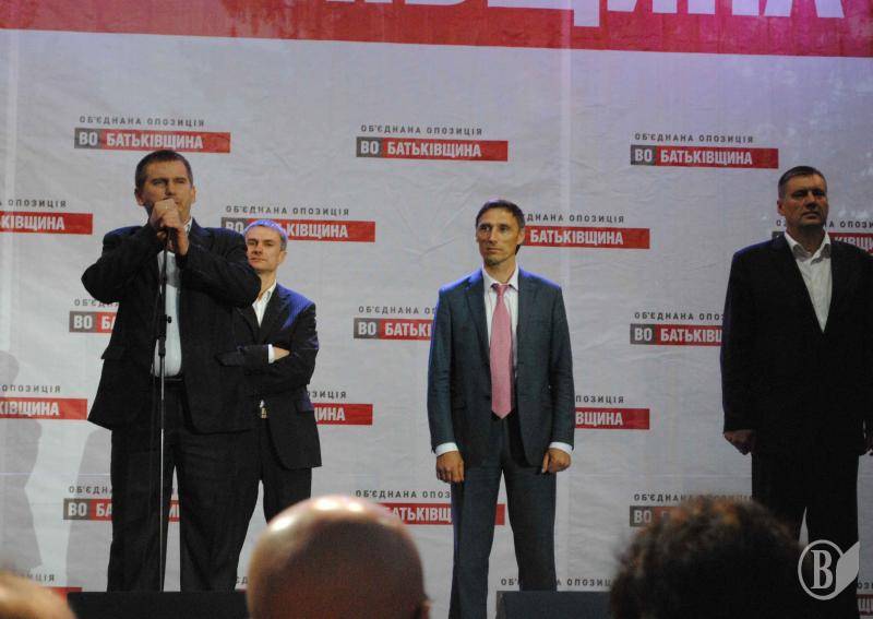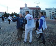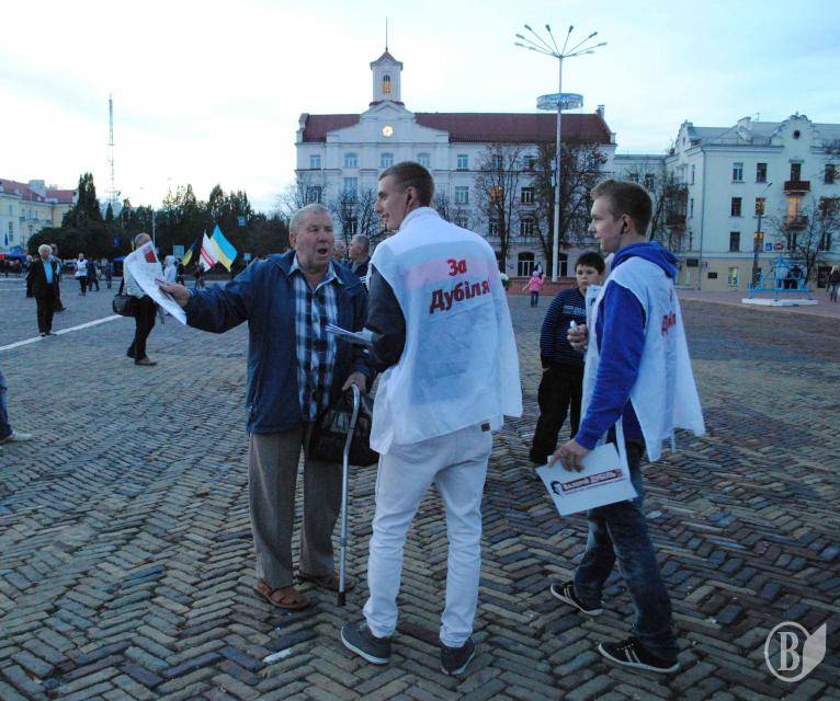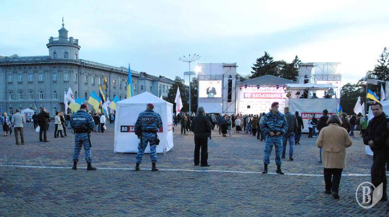 Не зважаючи на музику й танці в іншому кінці площі, Арсеній Петрович та його соратники все ж спілкувалися з виборцями. Народу показали кандидатів-мажоритарників від Об’єднаної опозиції. Їм надали слово. У цей час перед телевізорами та на площах міст області люди могли послухати цей спіч.