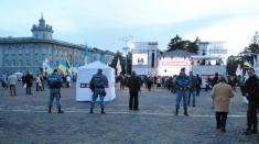 За рішенням Київського Апеляційного адміністративного суду Арсенію Яценюку дозволили зустрітися з чернігівцями на Красній площі 1-го жовтня. У той же час на іншій сцені і у тому ж місці влада вшановувала людей похилого віку концертом (перше жовтня вважається їхнім днем).