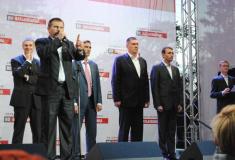 Пан Яценюк енергійно вийшов на сцену і почав говорити те, що народ хотів почути. Яка влада погана, як народу погано живеться і до чого довели нашу країну. Тоді перейшов до передвиборчих обіцянок ОО. Щоб здаватися не пустослівним пообіцяв, що коли прийдуть до влади, приймуть закон, зобов’язуючий політиків виконувати свої обіцянки.