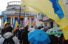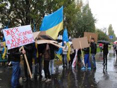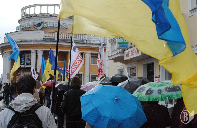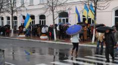Пройшовши під дощем від місця збору до скверу Попудренка мітингуючі проти жеків і мера зустріли… мітингуючих проти Валерія Дубіля.