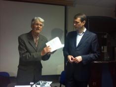 - Мені приємно, що бачу перед собою таких молодих і красивих людей. Сам народився я у Чернігівській губернії у Броварському повіті, а тому ваш земляк. У культурі нам треба зробити ще багато. В шкільну програму треба включити Андрія Малишка автора "Рідна мати моя". Антинародне Міносвіти, на жаль, викинуло його зі шкільної програми.