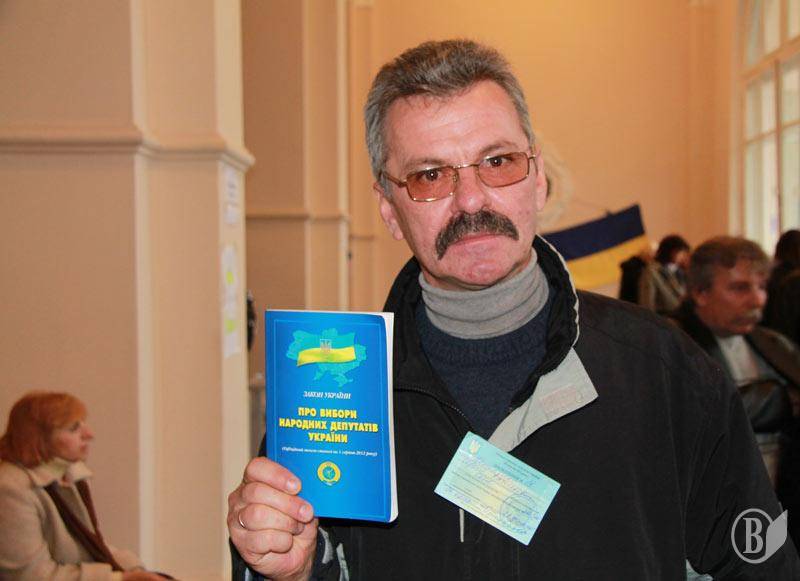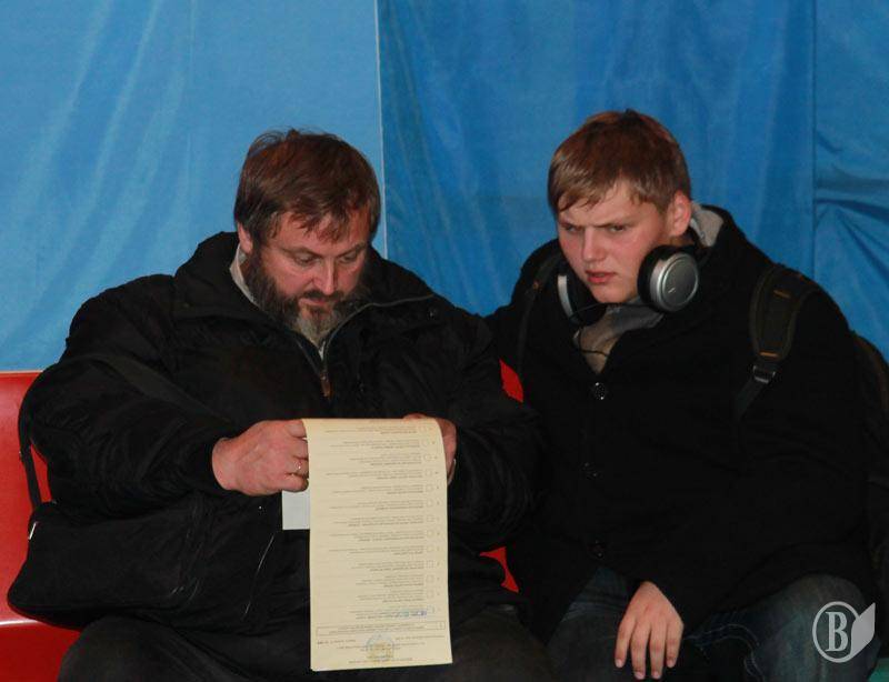 Тут довго вивчав виборчий бюлетень отець Мирон.