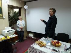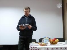 Щойно ми переступили поріг довженківської хати, в якій відбувалася презентація книги, як у моїй голові заграла музика. Її я одразу і точно вирішив використати під час монтажу відеоматеріалу. Що то за музика? З того часу, як Олег Скрипка записав з Ані Лорак мюзикл «Вечори на хуторі», мене брала за душу і не відпускала автентична колядка, яка чомусь вистрілювала у саме серце.