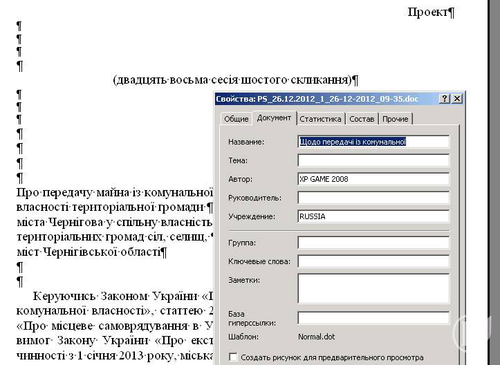 Принаймні, саме ця назва установи, чи то пак "учреждения", зазначена у властивостях деяких файлів з текстами проектів рішень міської ради українського міста Чернігова.