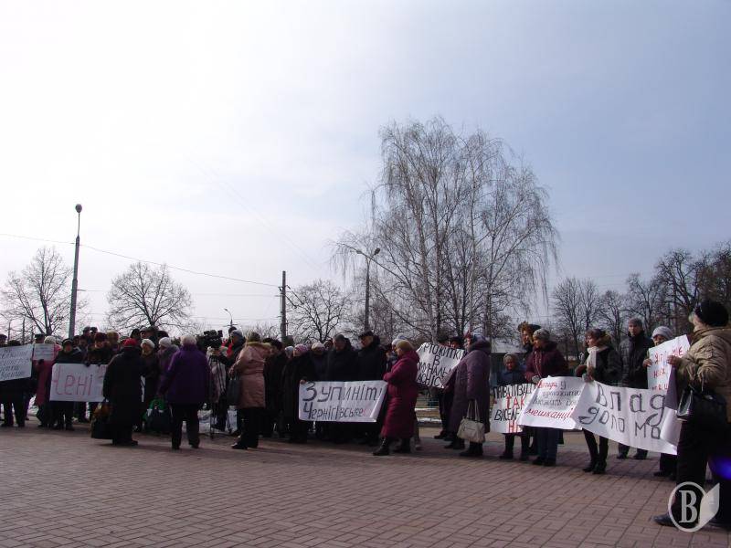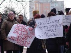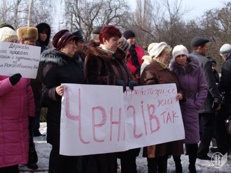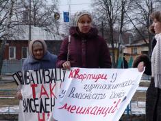 Чернігівці тримали плакати «Ні виселенню пенсіонерів і дітей на вулицю», «Зупиніть чернігівське свавілля», «Відомчому керівництву НІ», «Житло має належати тим, хто в ньому живе! Ні орендній платі», «Гуртожитки - в комунальну власність», «Квартири у гуртожитках у власність їхніх мешканців!», «Приватизації - так! Виселенню - ні!».