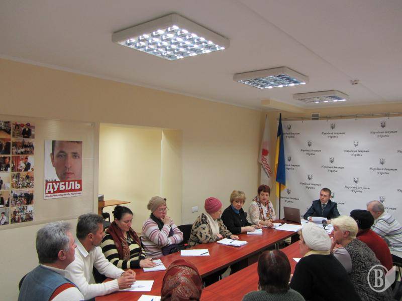 Помічник-консультант народного депутата України Валерія Дубіля Людмила Шандренко була присутня на цій акції і зібрала постраждалих жителів гуртожитків у приймальні Дубіля: