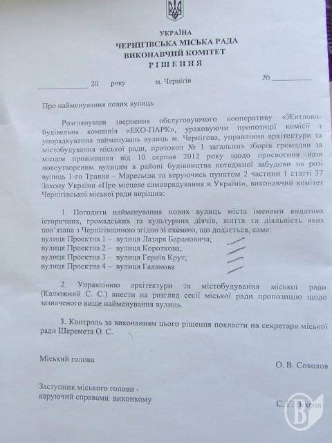 Пояснення просте. Ділки у міській раді уже підготували рішення (на фото) на якому хочуть уже назвати нові вулиці в Ялівщині. Там уже намічені вулиці Героїв Крут, Лазаря Барановича, Короткова, Галанова. Тобто до узаконення меж Ялівщини, ділки намагаються виділену раніше землю і споруди (!) узаконити це легальним шляхом на сесії.