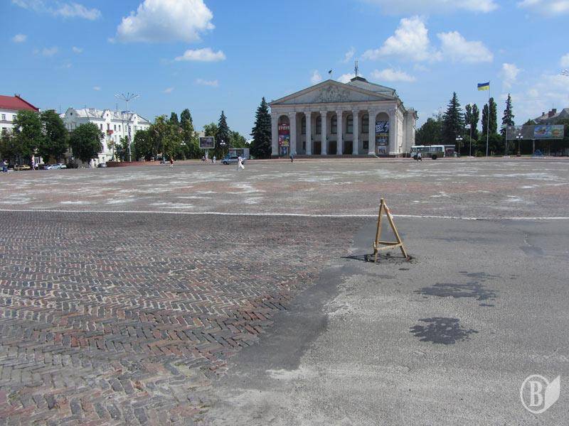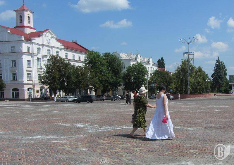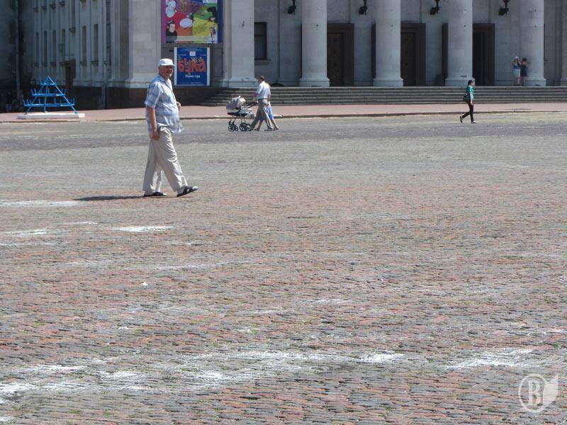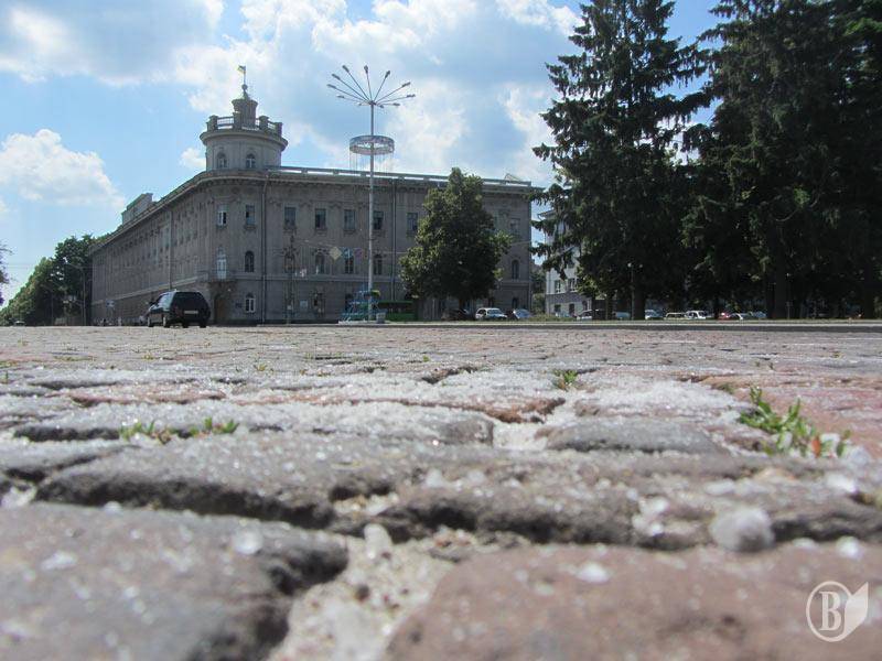 Сьогодні, 10 червня, центральна Красна площа Чернігова зранку вкрита якимось білим порошком. Наче снігом.