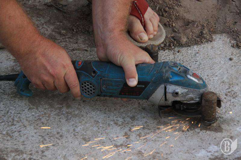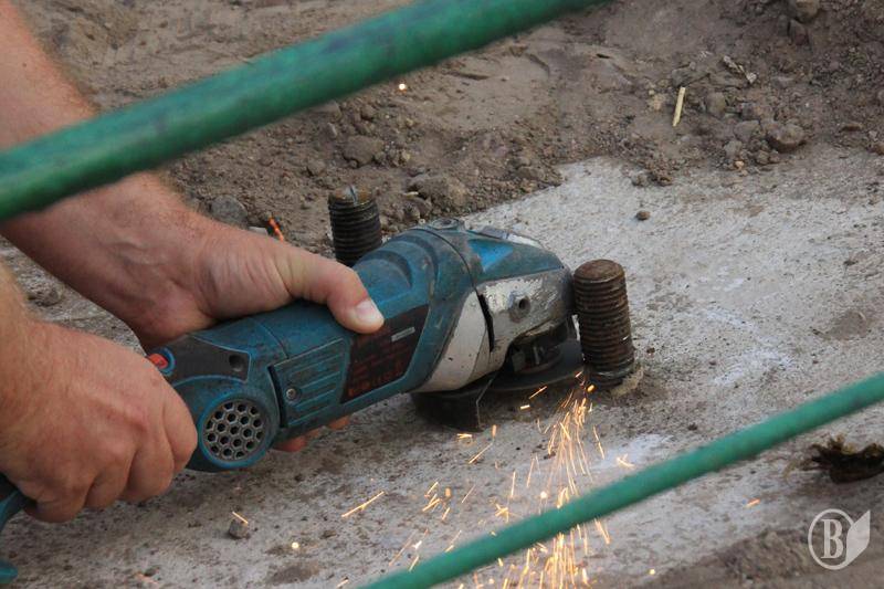 Як видно нижче на фото, мешканці зрізали болгаркою кріплення невстановленої конструкції.