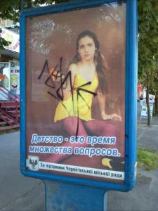 Жителі і гості міста мали нагоду милуватися неперевершеними перлами креативної таємничої команди, яка дивувала своїми кокошниками з цитатами а-ля Дар'я Донцова російською і дивними картинками із сексуальними об'єктами дівочої статі віком 12+.