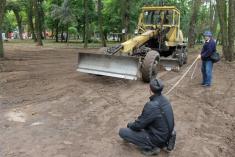 На території Чернігівського центрального парку культури та відпочинку, навпроти Літнього театру, працюють люди і техніка.