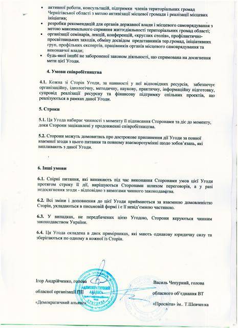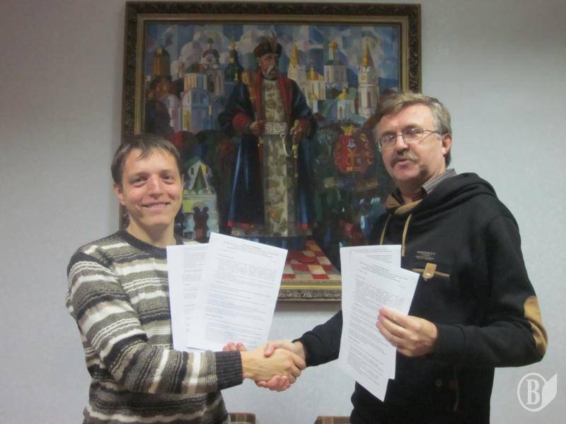 Руководители областных организаций ВУТ"Просвита"имени Т. Шевченко Василий Чепурной и политической партии"Демократический Альянс"Игорь Андрийченко подписали Соглашение о сотрудничестве.