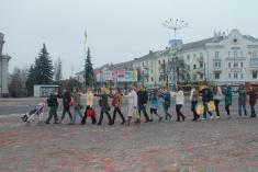 К флэш-мобу присоединились волонтеры Черниговского областного педагогического лицея, методисты отдела инклюзивного обучения Областного института последипломного педагогического образования им. К. Д. Ушинского, представители бизнес-структур, которые находятся рядом с площадью и другие небезразличные граждане нашего города.
