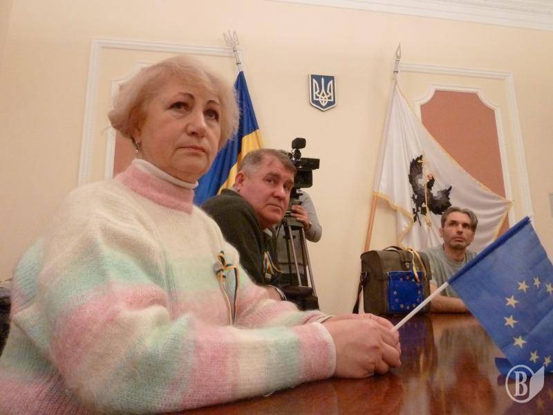 Приходит мэр? Нет! К активистам в малый зал приходит секретарь горсовета Олег Семенович с руководителем юруправления Павлом Вовком, чтобы вытурить евромайдановцев в три шеи. Аргументы поражают: «граждане не могут здесь находиться и по своему усмотрению объявлять пресс-конференции» (возможно – ред.), «это коммунальное имущество и проведение мероприятий не является бесплатным» (на фоне бесплатности для чиновников и нанесения десятитысячных убытков общественной организации поражает своим цинизмом – ред.).