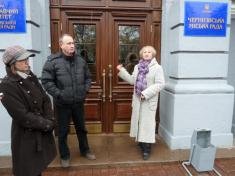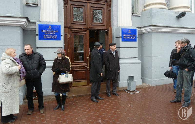 Поэтому, поскольку исполкому на 11:00 «кровь из носа» нужно проводить запланированную комиссию, а «Хрюши все нет», активисты выходят на улицу, за ними беспрецедентно закрывают двери на замок. В мэрию даже не впускают тележурналиста Юрию Михулю, путаясь в «отмазках» и заявляя ему, что в мэрии «запланированных мероприятий нет»!