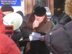 Пикет «открыл» депутат Черниговского городского совета Олег Русин. Он ознакомил общественность с требованиями к черниговской власти поддержать обращение жителей к Президенту и Верховной Раде. В список «пожеланий» внесли и требование об отмене законов от 16 января. Верховная Рада проголосовала за отмену 9 из 12 законов, однако Президент до сих пор не подписал это решение.