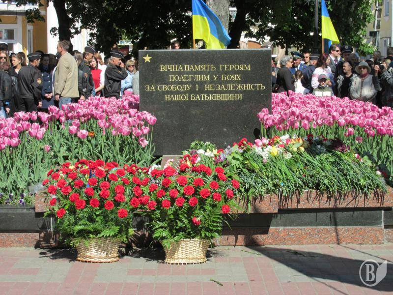Торжества начались у Красной площади в сквере имени Попудренко. Павших воинов почтили председатель облгосадминистрации Владимир Ивашко, председатель областного совета Николай Зверев, народные депутаты Украины Валерий Дубиль и Владислав Атрошенко, городской председатель Александр Соколов.