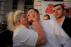 Встречали лидера Радикальной партии громкими аплодисментами. В отличие от политиков, которые уже приезжали в Чернигов, Ляшко не прятался от избирателей на высокой сцене. Напротив: стоял близко к людям, и каждый, кто хотел, мог подойти, сфотографироваться, взять автограф, даже обнять и поцеловать. В Чернигове Ляшко едва не затоптали в толпе.